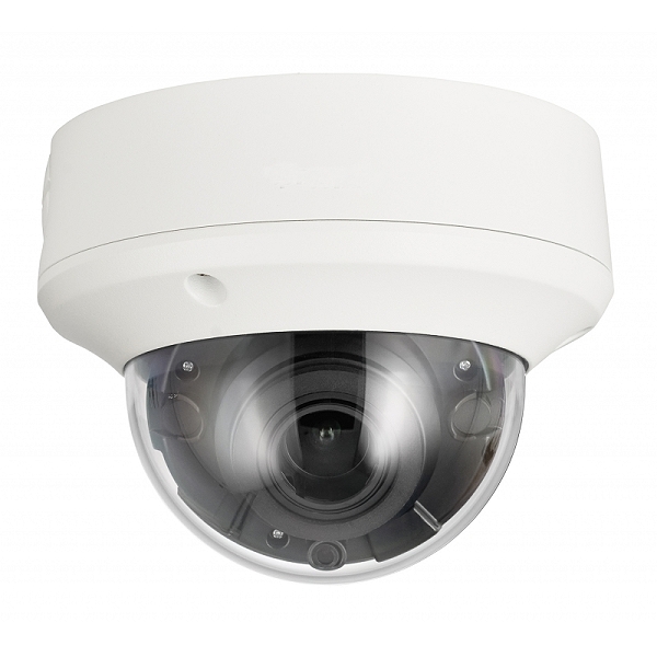 Wetterfeste und vandalismusgeschützte 8 Megapixel (4K) Dome Kamera mit 2.7-13.5mm Motorzoom und Autofokus.