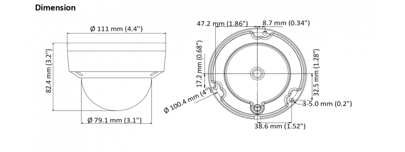 Wetterfeste und vandalismusgeschützte 8 Megapixel (4K) Dome Kamera mit 2.8mm Weitwinkelobjektiv.