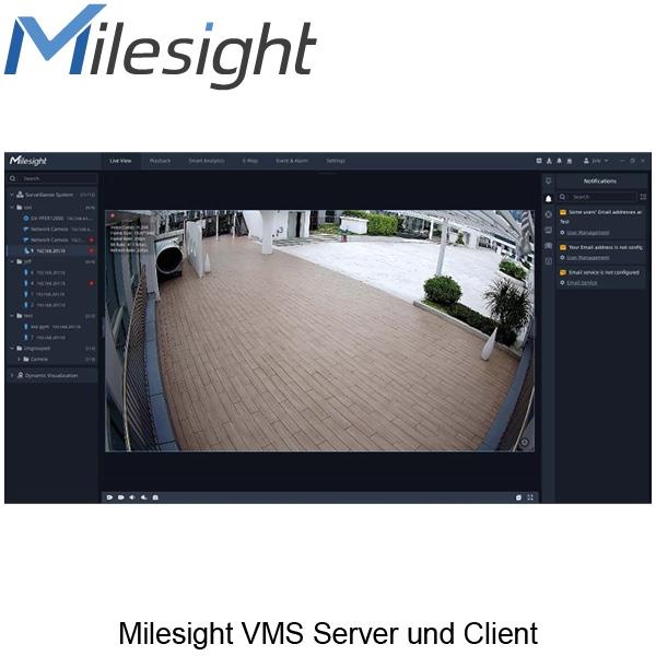 Als eine Plattform für Milesight Kameras und ONVIF-kompatible Kameras bietet Milesight VMS Enterprise die ideale Lösung mit Kernfunktionen wie Live-Ansicht, Wiedergabe, Export, Analyse, E-Map Backup und viel mehr.