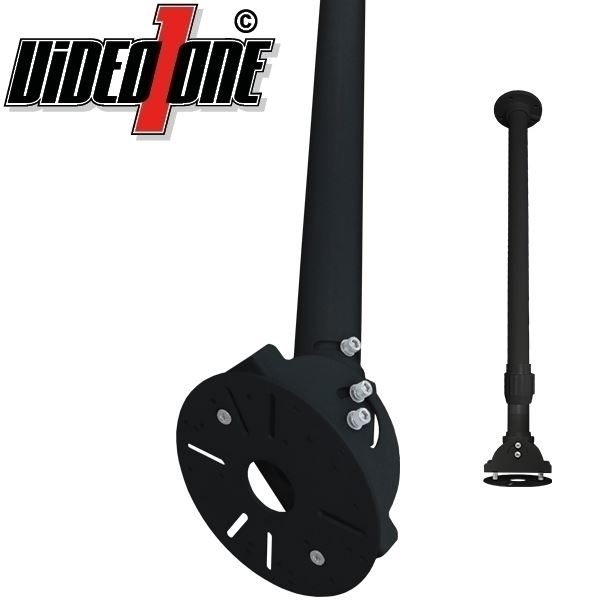 Universeller Teleskop-Deckenhalter. Länge 0.77 Meter bis 1.28 Meter ausziehbar mit universeller Montageplatte zur Montage von Kameras. 360 Grad schwenkbar, 90 Grad neigbar beidseitig. Innen liegende Kabelführung